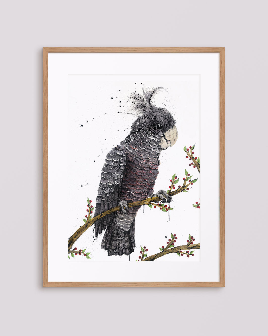 Sassy takes pride hanging in my lounge room, such a striking piece showcasing the beauty of the black cockatoo.
