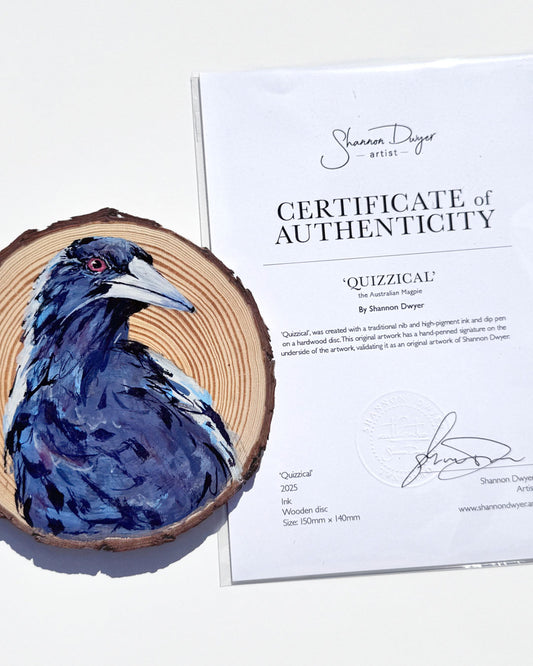 'QUIZZICAL' the Australian Magpie Wooden Disc - SOLD