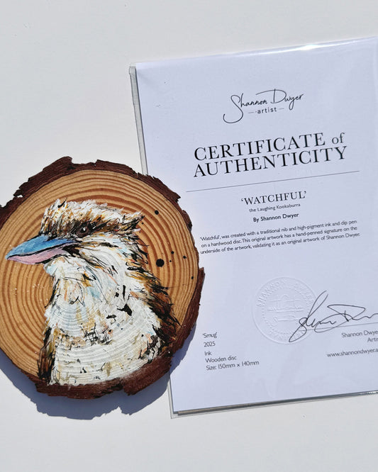 'Watchful' the Laughing Kookaburra Wooden Disc