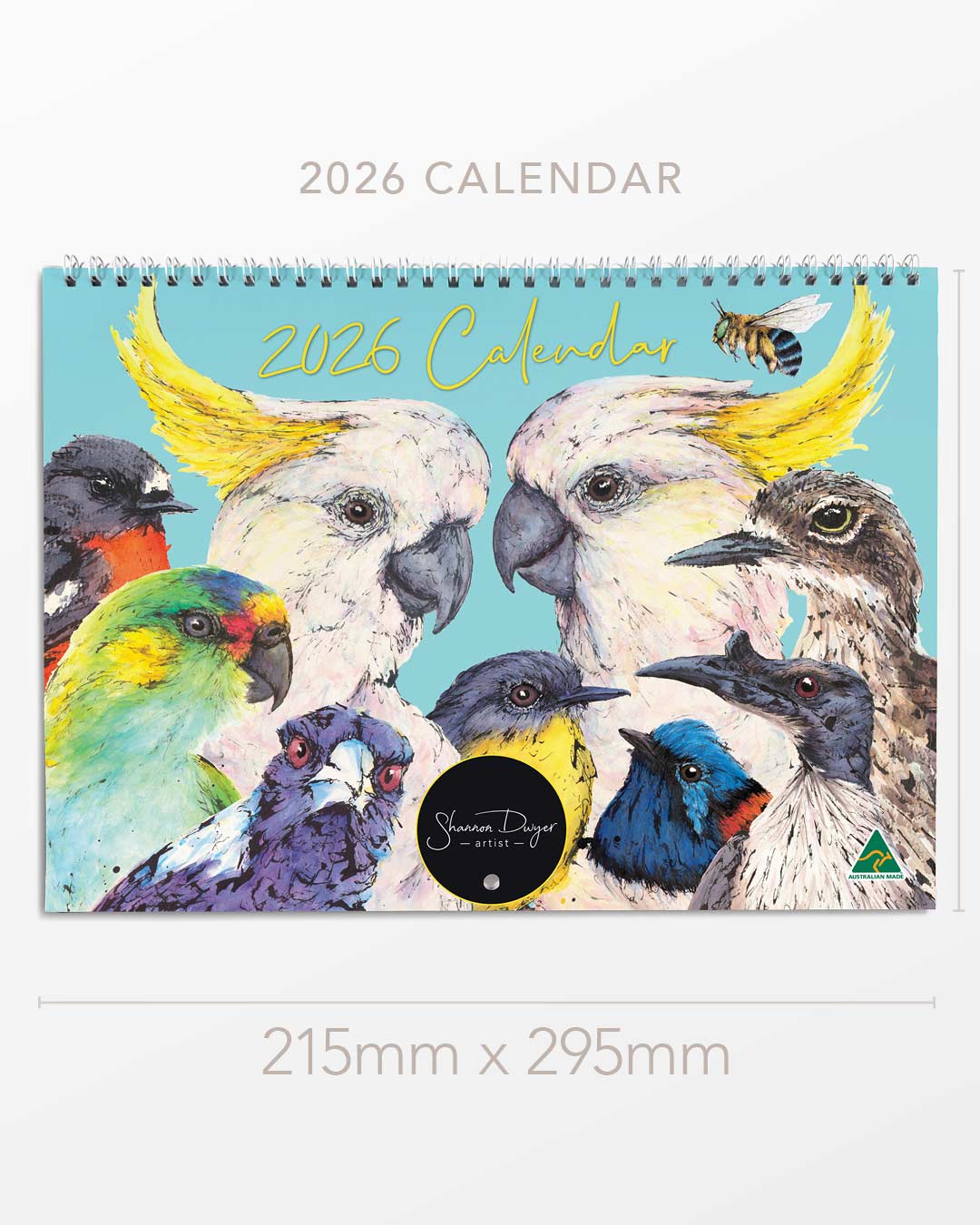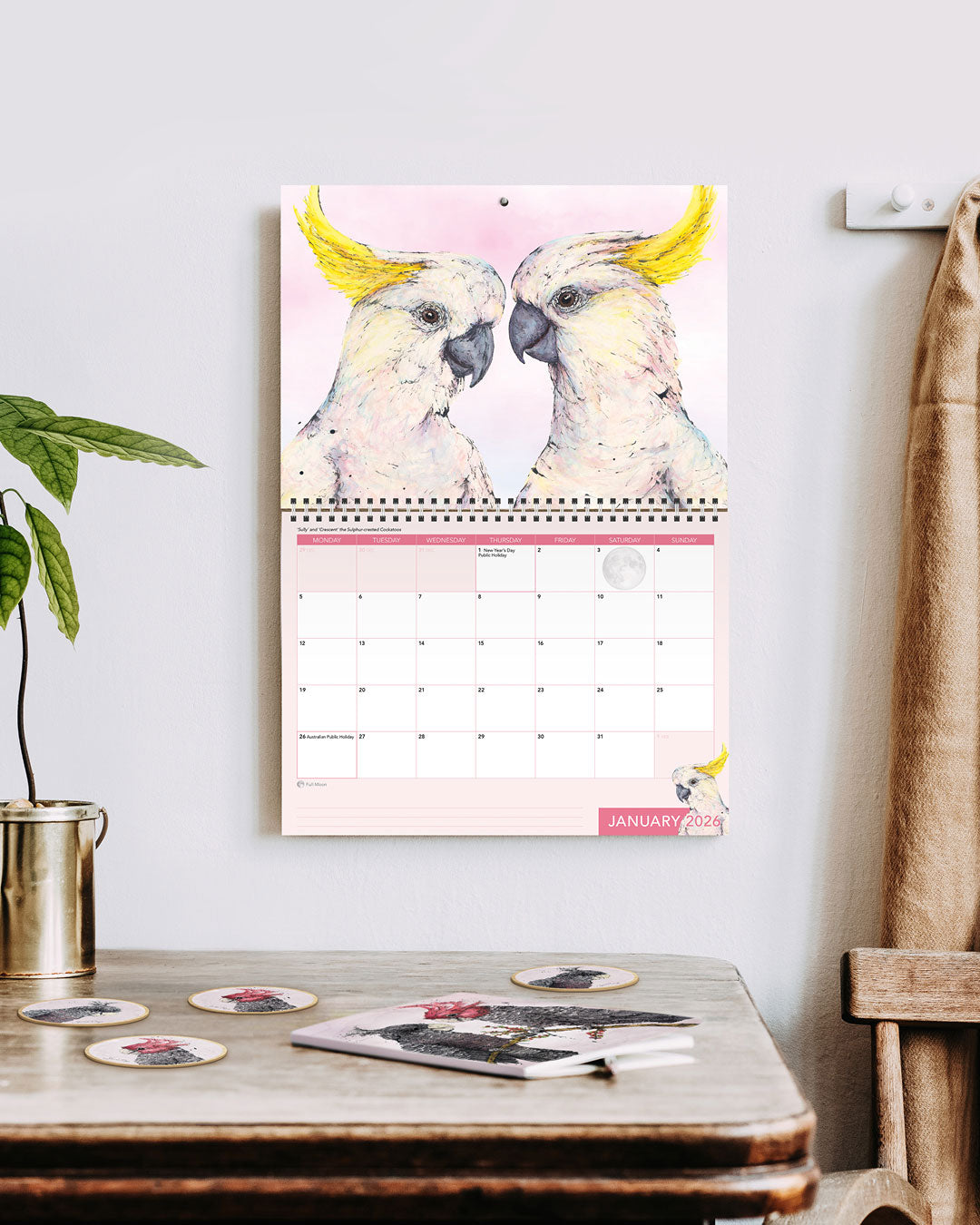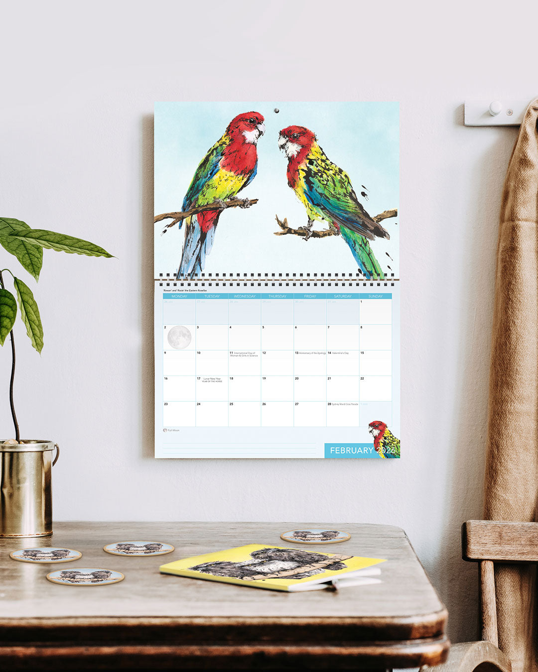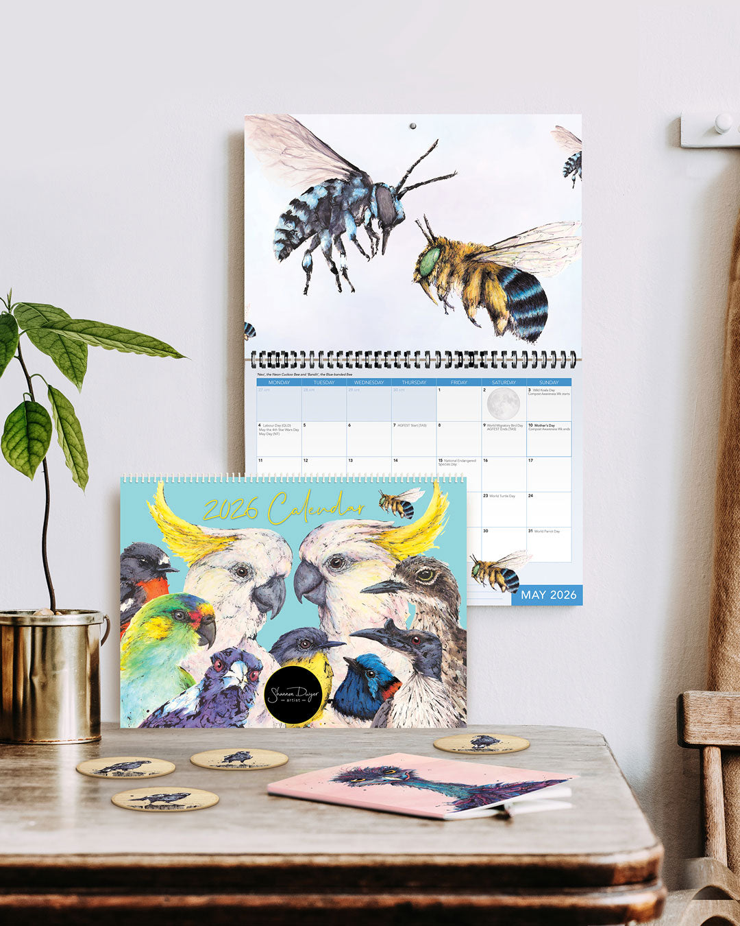 Shannon your work is incredible! We can’t wait to hang our 2026 calendar on the fridge and have the bright and colourful faces of Australian wildlife looking at us :)