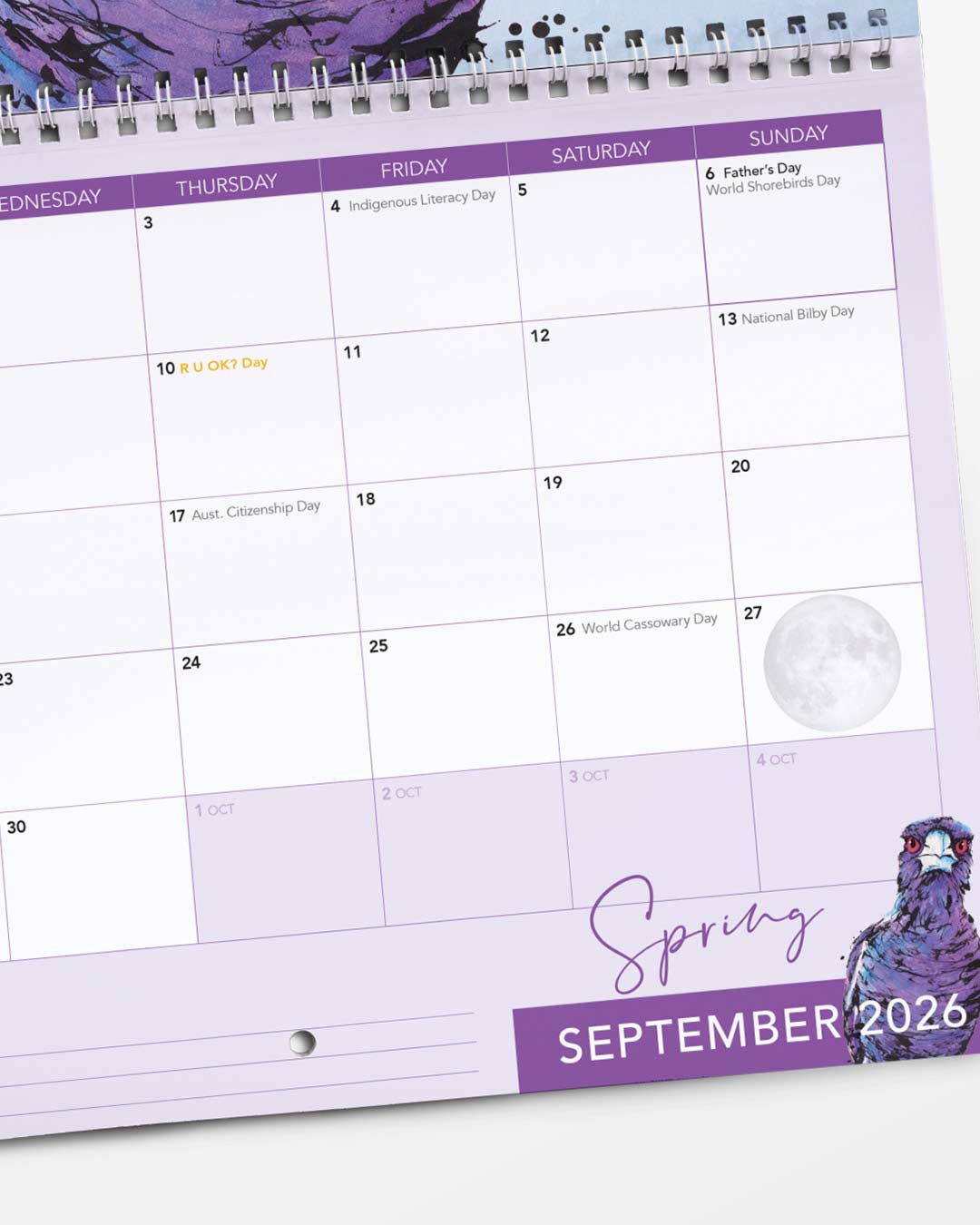 - Celebratory dates like: R U OK Day, Harmony Day, Mardi Gras, World Cassowary Day, international artists day and much, much more are also included for a bit of fun!