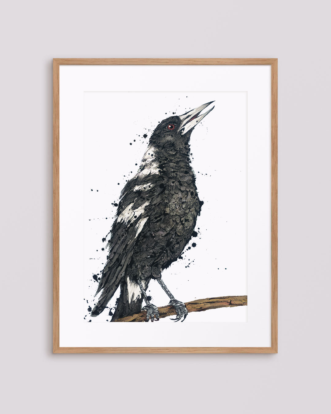 Painting Carol the Australian Magpie was such a treat – I'm completely obsessed with magpies! We have a family of them that live in our area that visit us regularly. I loved getting lost in the feathers, using intricate ink patterns to bring all that texture life. Magpies are not only an iconic animal of Australia but also a part of its soundscape, waking to its stunning warbling everyday.