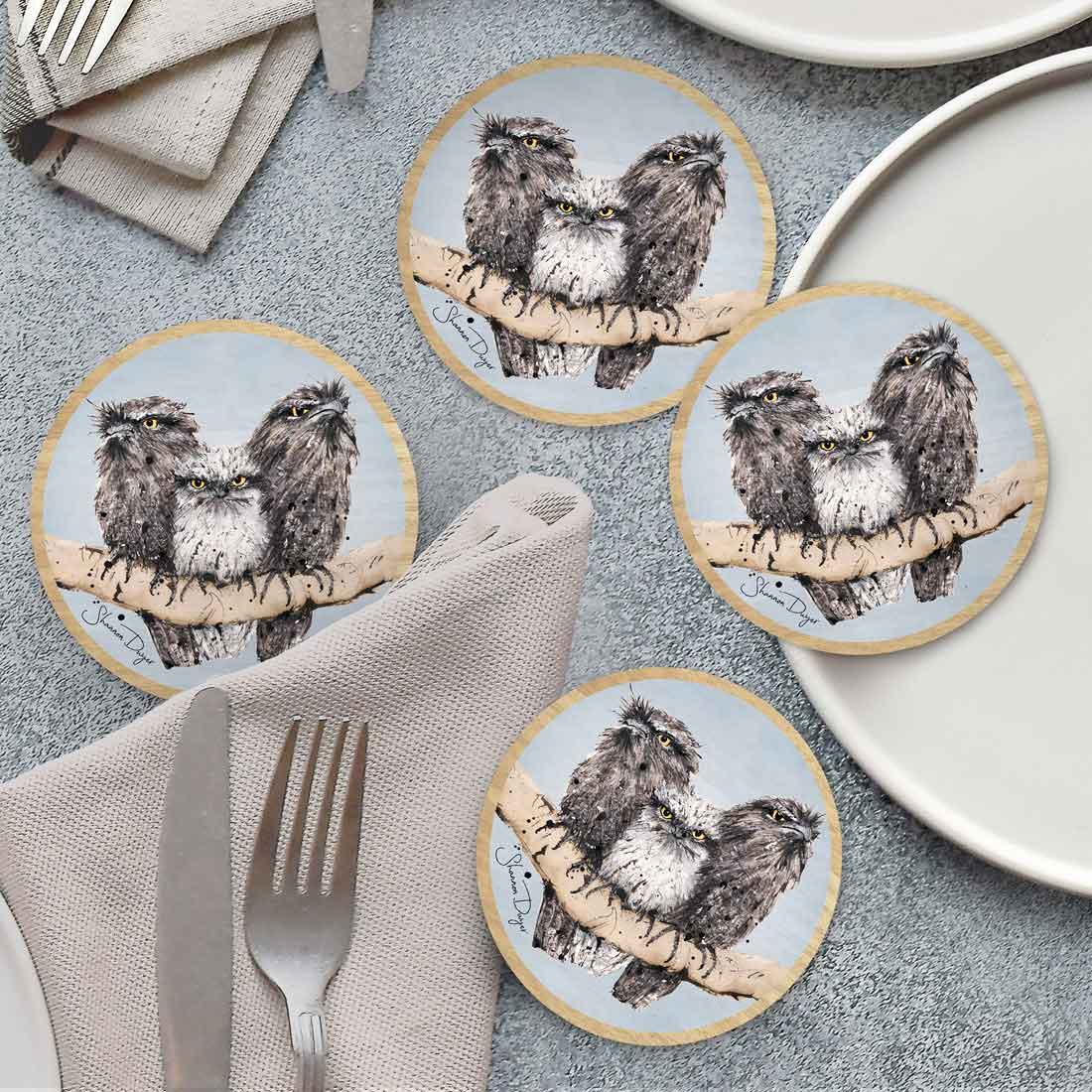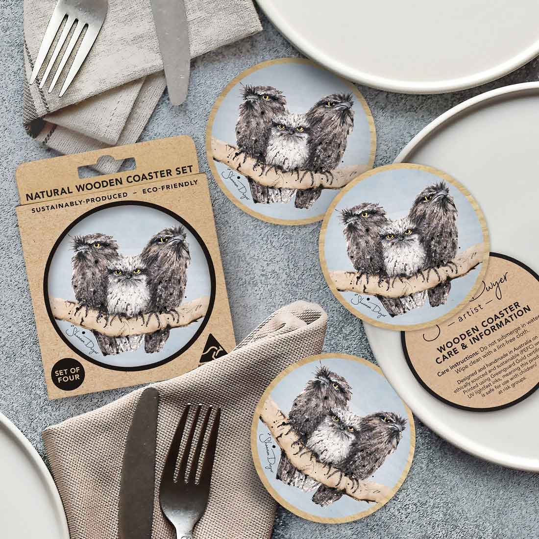 These coasters are designed, manufactured and printed in Australia on high-quality, responsibly sourced (PEFC) wood, each artwork is printed directly into the grain of the wooden coaster to ensure rich, vibrant colour and sharp detail.