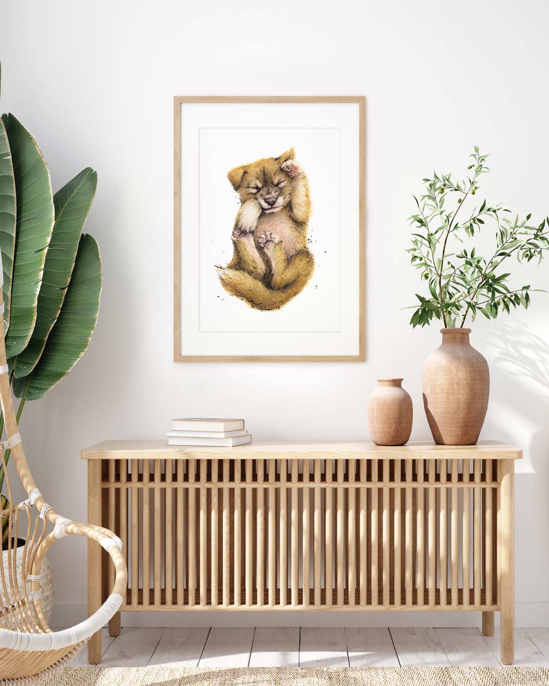 This piece captures the tender, fragile side of a species often seen for its strength and adaptability, highlighting the innocence and charm of a young dingo at rest. Perfect for lovers of Australian wildlife, it’s a gentle reminder of the beauty, vulnerability and uniqueness of our native animals.