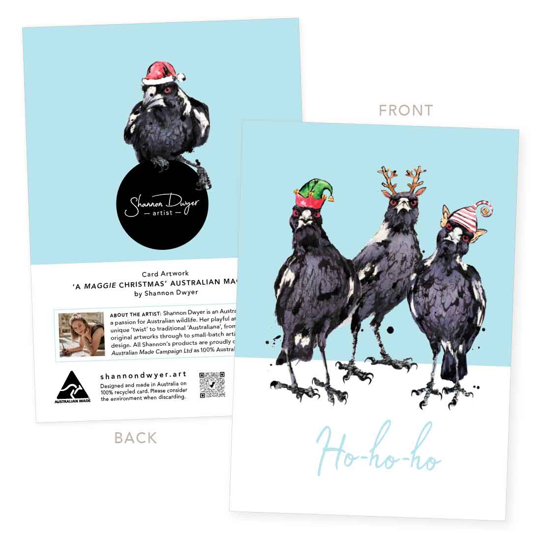 Featuring artwork of a quirky, curious and hilarious 'Festive' magpie!