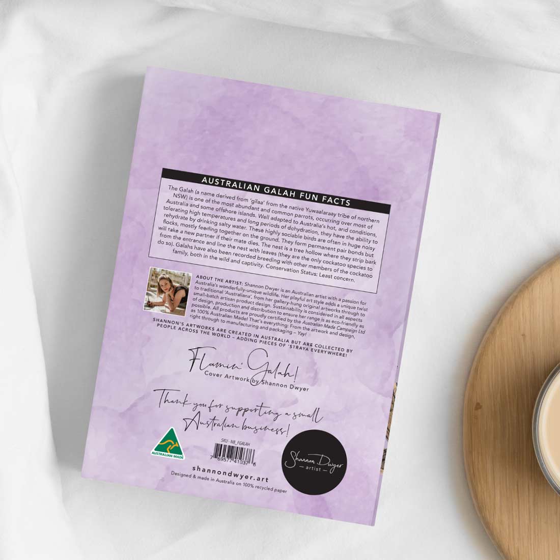 Each notebook features a stunning cover adorned with Shannon’s unique artwork and, for a bit of FUN (and because conservation and protection of Australia’s wild spaces is at the heart of what Shannon does), the back cover of the notebook includes COOL FACTS about the animal featured on the cover.
