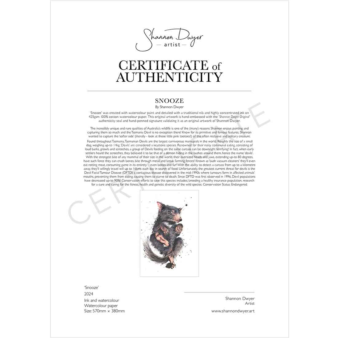 This original artwork is embossed with the ‘Shannon Dwyer Original’ authenticity seal and hand-penned signature validating it as an original artwork of Shannon Dwyer.