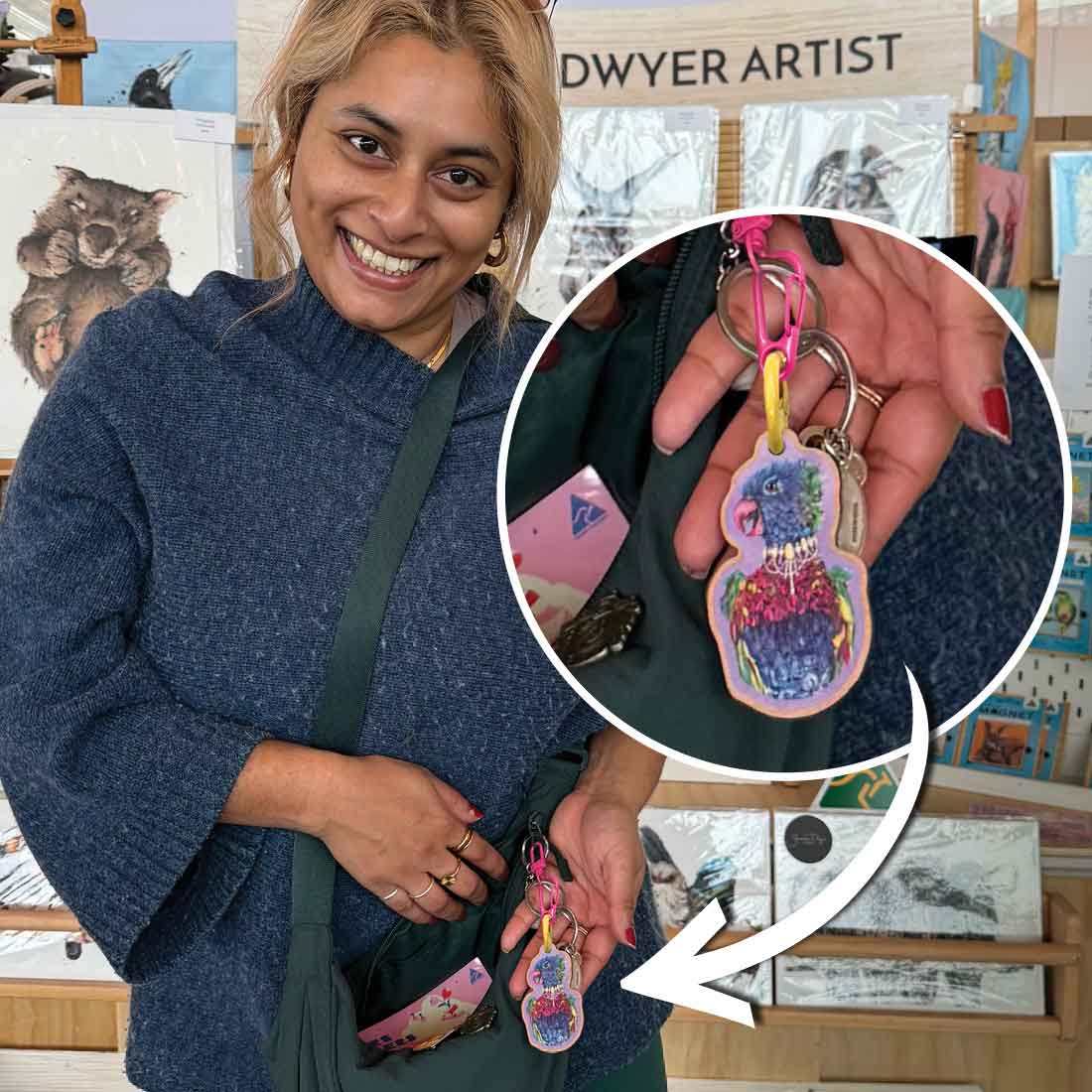 Raise your accessory game with these handmade, Eucalyptus Bag Charms featuring unique and colourful original artwork by Shannon Dwyer.